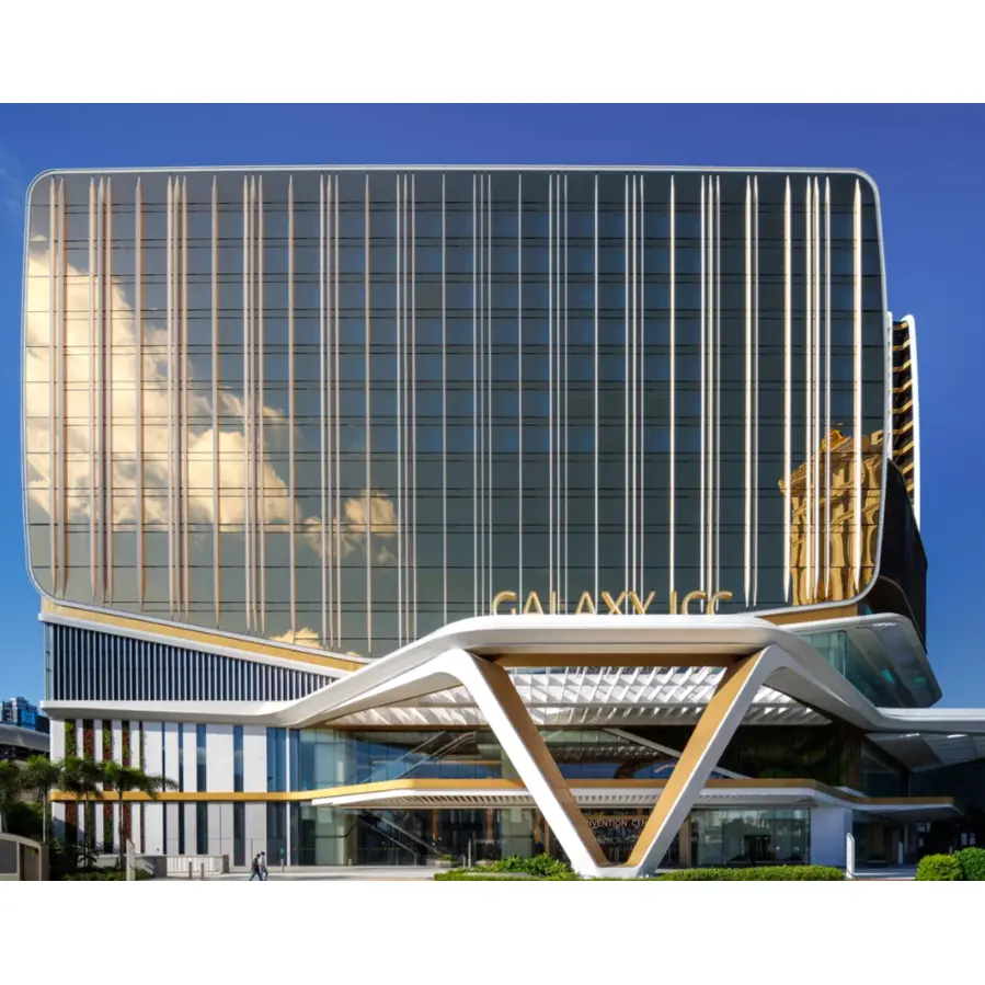 Epäsäännöllisen muotoiset alumiiniset yksittäispaneelit tukevat monimutkaista kaarevien pintojen käsittelyä, mukaan lukien yksi- ja kaksoiskaarevat pinnat, mikä mahdollistaa visuaalisesti näyttävien rakennusten julkisivujen luomisen. Ne voidaan myös räätälöidä epäsäännöllisen muotoisiin sisäverhoseiniin, jotka sopivat korkeakattoisiin auloihin, atrium-malleihin, hissihalliin ja muihin sisätiloihin, tasapainottavat arkkitehtonisen toiminnallisuuden esteettisen suunnittelun kanssa ja rikkovat perinteisten tasomaisten verhoseinien rajoituksia.
