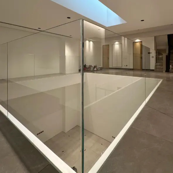 Valitsemme ytimen pohjamateriaaliksi kansallisen 3C-sertifioidun karkaistun lasin, ja ultravalkoisella karkaistulla lasilla on korkea valonläpäisykyky, joka tarjoaa panoraamanäkyvän vaikutelman näkymää estämättä ja tilan tuntua maksimoimatta. Karkaistulla lasilla on erinomainen iskunkestävyys ja puristuskestävyys, ja rikkoutuessaan se on ei-kulmikas rakeinen muoto, mikä eliminoi terävien naarmujen riskin.